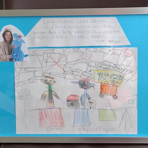 Und dann war der große Moment da: Woozle und Simon kamen von ihrer Pause zurück und begrüßten Raphael sehr herzlich. Stolz überreichte er sein selbst gemaltes Bild und Simon las sogar laut den Text darauf vor. Raphael war überglücklich! Er strahlte im ganzen Gesicht und genoss diesen Moment sichtlich.