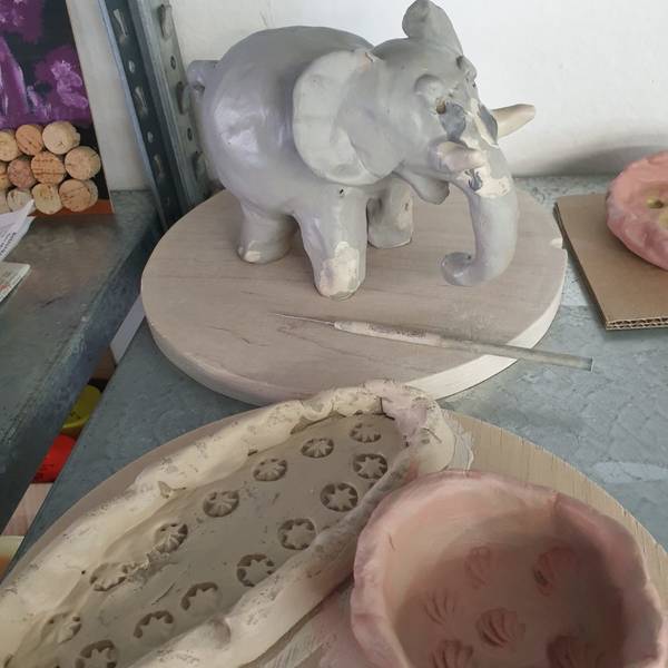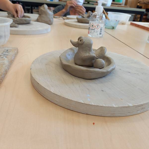 In der ersten Septemberwoche öffnete die Künstlerin Monika Veit die Türen zu ihrem Studio „Zebra“ in Winnenden. An je 2 Terminen pro Tag durfte nach Herzenslust Ton geknetet werden. Es war jeweils nur eine Familie anwesend und nach einer kurzen Vorstellungsrunde ging es mit einem großen Batzen Ton, der geteilt wurde, los.