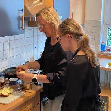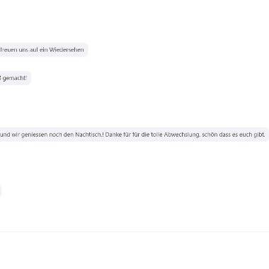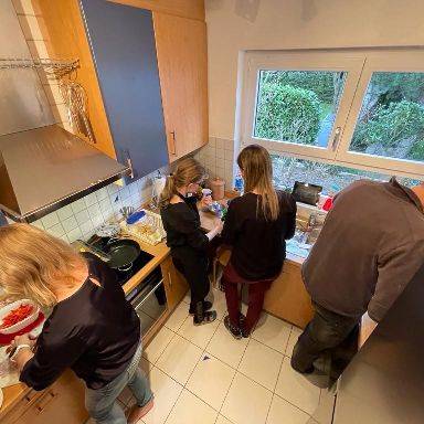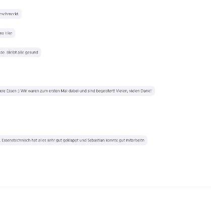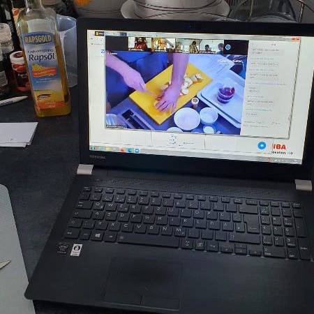Viel Gelächter sah man an den Bildschirmen. Gegen 20:30 Uhr war das letzte Menü gekocht und alle satt und sehr zufrieden, dass alles so gut geklappt hatte. Besonders freuten wir uns über die vielen lieben positiven Feedbacks im Chat.