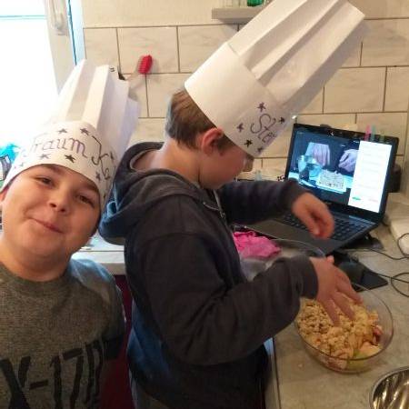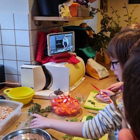 So entstand die Idee für das Online Kochevent. Das Team war so begeistert, dass die Organisation gleich begann. Für den Verein auch völliges Neuland und dennoch wollten wir es wagen und wussten auch schon, wer der ideale Partner für dieses Vorhaben war. Mit dem professionellen Team des Kochwerks in Backnang hatten wir gute Unterstützung und mit unserem Koch Udo Grabl wurde ein sehr tolles kindgerechtes Menü ausgetüftelt. Das war nicht ganz einfach! Der Termin für die Veranstaltung der 27.03. wurde auch sehr schnell gefunden und so konnten die Familien über unser Event rasch informiert werden. Die Einladungen wurden so schnell wie möglich rausgeschickt und wir warteten sehr gespannt auf die Resonanz der Familien. Hatte überhaupt jemand Interesse?
